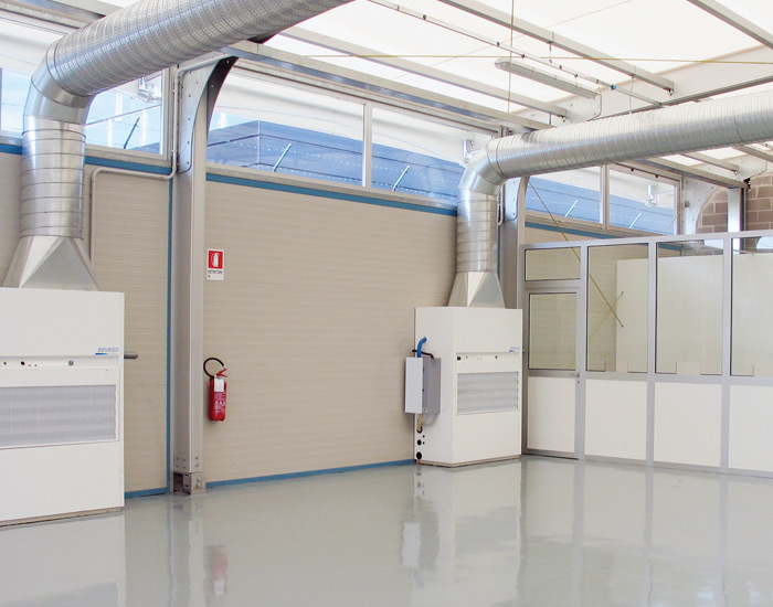 Halls can be equipped with ventilation and air conditioning systems. Interior spaces can also be divided with internal walls, allowing selective insulation rather than heating the entire hall.