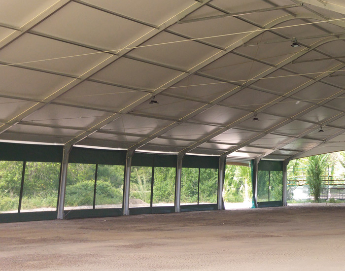 A ground-based riding arena can be constructed with standard walls, as an open structure, or with windbreaks. Hall structures also provide an easy solution for material storage and animal shelters needed on equestrian properties.