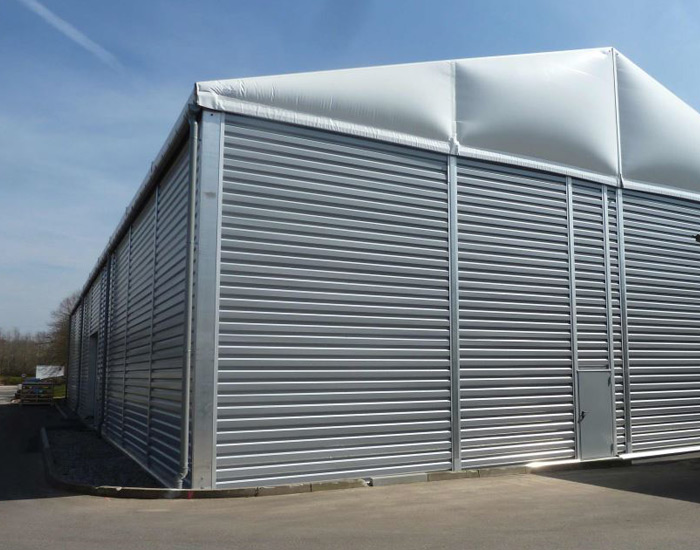 The hall can be covered with either durable PVC tarpaulin or steel structures. Insulated coverings are also available if a fully heated space is needed.