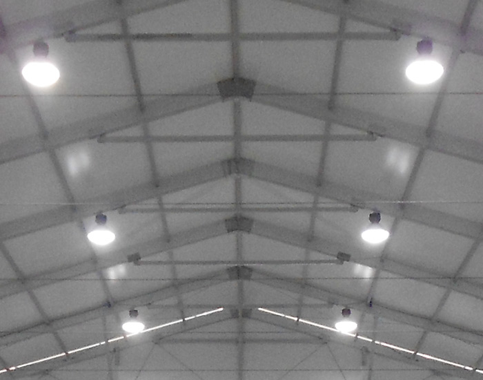 Hall lighting can be customized to suit its specific use. Our basic selection includes a variety of ceiling- or wall-mounted general lights, but custom lighting setups are also easily achievable thanks to the open support structure of the halls. Partial lighting can be installed if only certain areas need illumination.